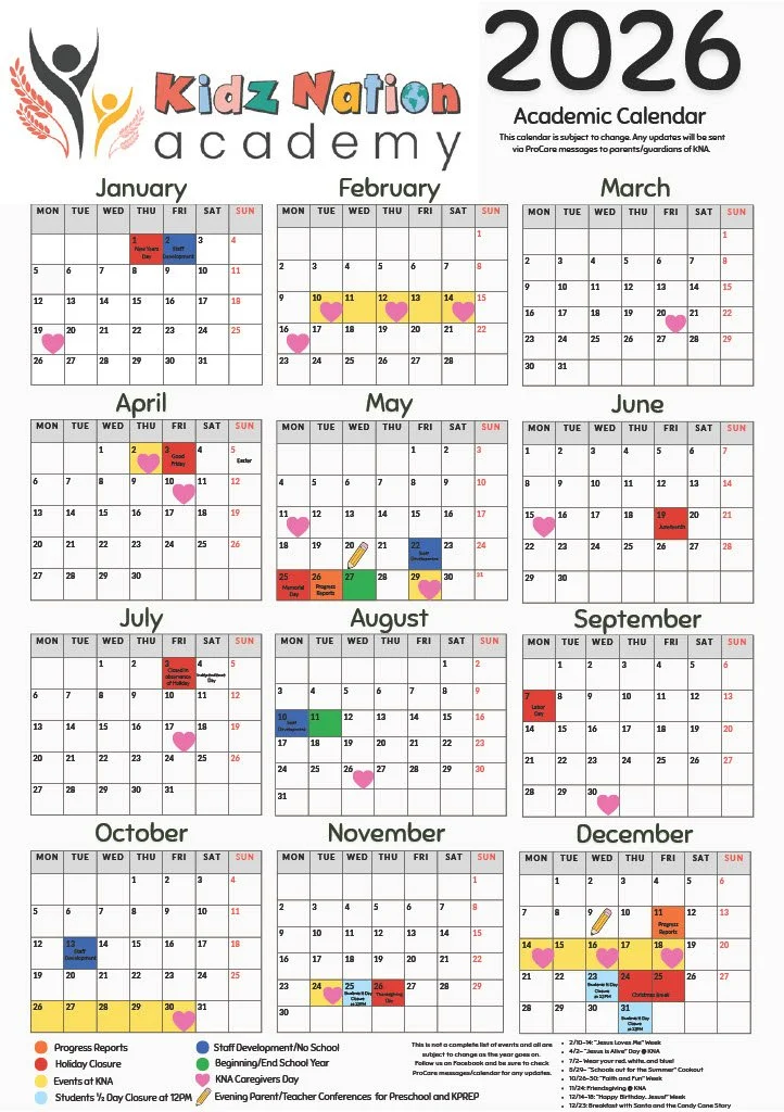 Kidz Nation Acedemy Calendar